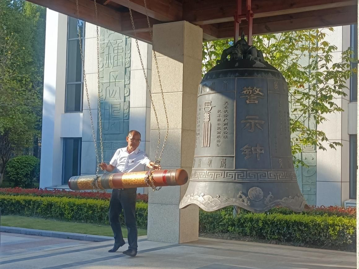 最后,在警示教育基地广场上,“警示钟”被庄重地敲响,警钟长鸣,声声入耳,提醒着在场的每一位党员同志要时刻绷紧廉洁自律这根弦,将廉洁自律的政治自觉、思想自觉和行动自觉融入到日常工作生活中,做到知敬畏、存戒惧、守底线,时刻保持头脑清醒,筑牢拒腐防变思想防线。
