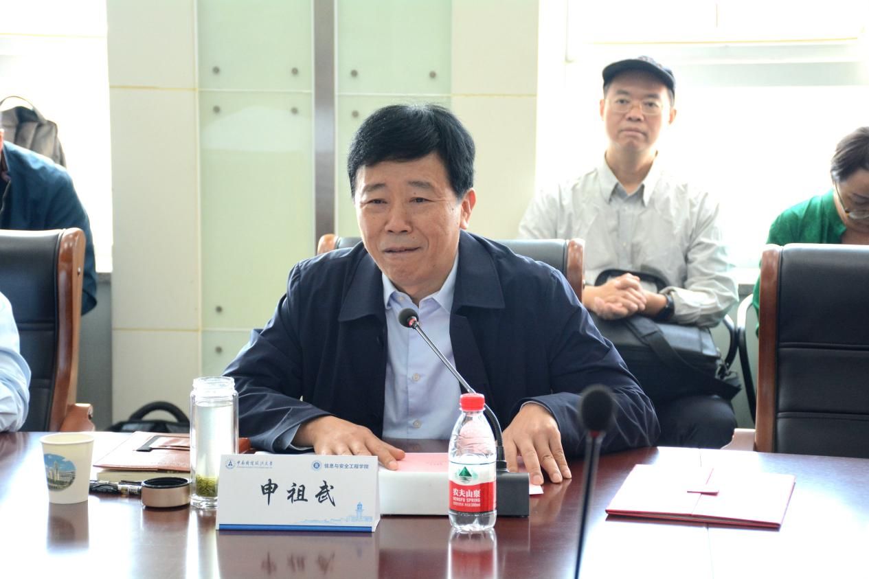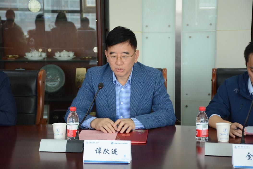 申祖武对谭跃进教授的加盟表示热烈欢迎与诚挚感谢。同时也指出了人才工作对高校学科建设发展的重要性,期望谭跃进教授能够对信息与安全工程学院学科建设发展起到引领和推动作用。