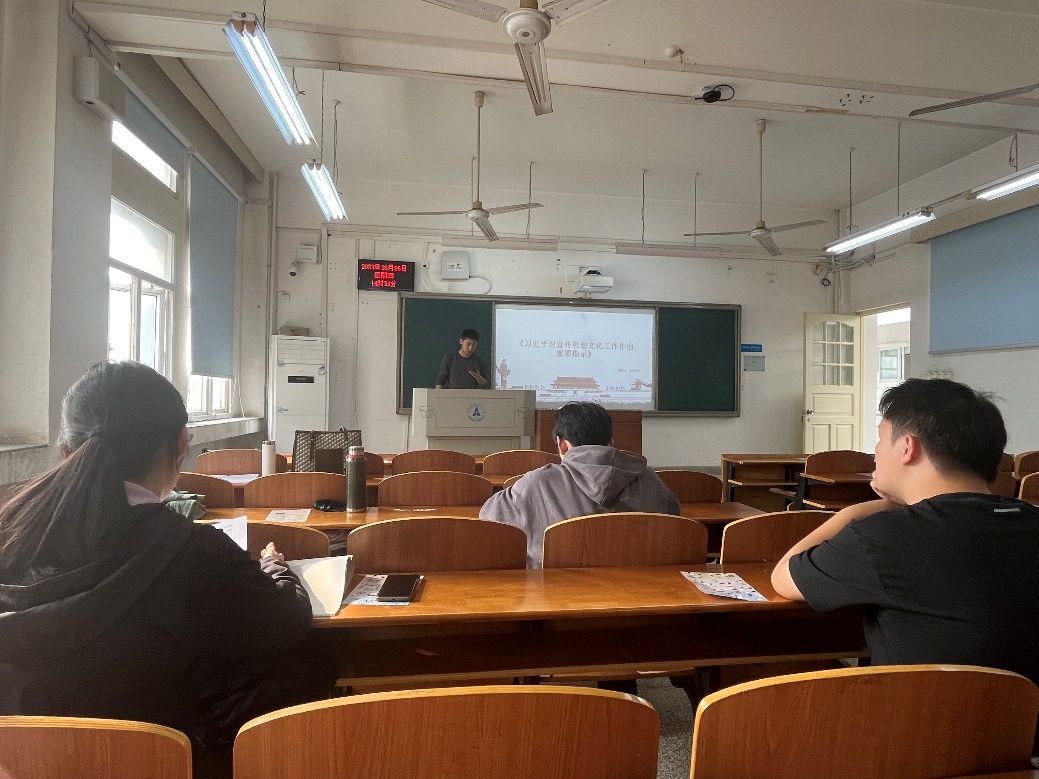 接下来,朱冰同志领学了《习近平对宣传思想文化工作作出重要指示》。习近平总书记强调要坚持以习近平新时代中国特色社会主义思想为指导,全面贯彻党的二十大精神,坚定文化自信,秉持开放包容,坚持守正创新,着力加强党对宣传思想文化工作的领导,着力建设具有强大凝聚力和引领力的社会主义意识形态,着力培育和践行社会主义核心价值观,着力提升新闻舆论传播力引导力影响力公信力,着力赓续中华文脉、推动中华优秀传统文化创造性转化和创新性发展。由此,我们更加注意思想文化传播的重要性,坚定文化自信,秉持开放包容。