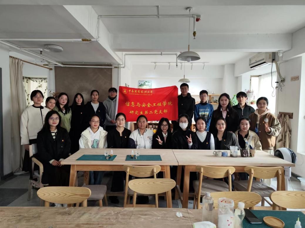 中华优秀传统文化是中华民族的魂和根,非物质文化遗产更是中华优秀传统文化的重要组成元素。为深入开展学习贯彻习近平新时代中国特色社会主义思想主题教育,把中华优秀传统文化同基层治理相结合、同红色文化相结合,让基层党建工作更有深度、更有温度,11月18日下午,信息与安全工程学院研究生第二党支部外出开展了以“让非遗在新时代焕发出新的光彩”为主题的传统非遗文化体验活动。活动开展前,支部党员对扎染、掐丝珐琅、陶艺等悠久的历史和文化背景进行了了解,在老师的指导下,支部党员分为三组,分别体验扎染、掐丝珐琅、陶艺等手工项目。