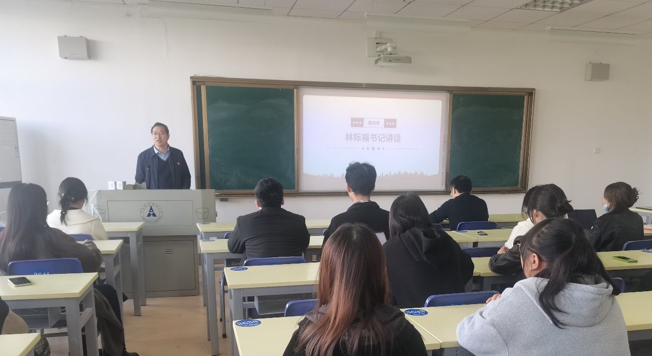 会议第四项,学院党委书记林际福进行总结指导并讲授专题党课。林书记强调,党的二十大高举中国特色社会主义伟大旗帜,明确把学习贯彻习近平新时代中国特色社会主义思想作为新时代作为新时代党的建设的这个方向指引和根本遵循,我们应该认识到党在基层党组织的政治建设是至关重要的。结合本次主题党日活动,林书记对支部提出两点希望:一是要加强主题教育活动,通过理论学习教育最终让支部成员有所感悟的同时做到学以贯通指导实践,能够在未来的这个职业规划和发展路上取得很好的成绩;二是充分发挥高校基层党组织的功能,结合专业特色开展形式和内容更加丰富有效的支部活动,更重要的是要有大局意识、全局观念,在日常的学习和活动当中树立榜样。