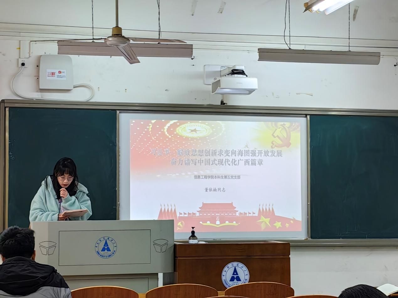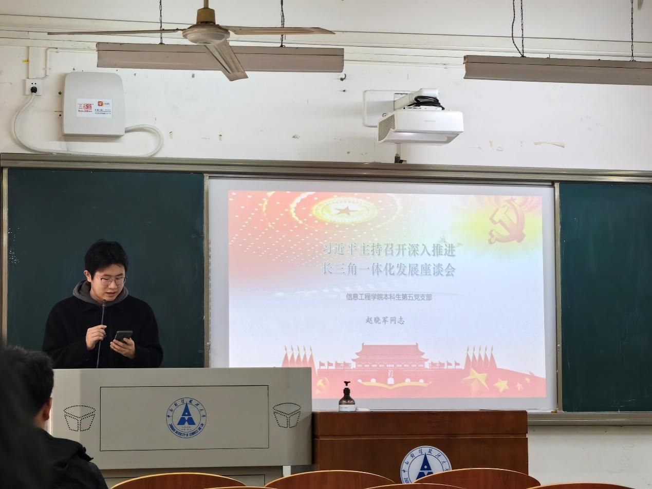 随后,由支部成员领学主题文件,分享学习心得。朱秋羽同志领学了《中央经济工作会议在北京举行 习近平发表重要讲话》,习近平全面总结2023年经济工作,深刻分析当前经济形势,系统部署2024年经济工作。邹晨琳同志领学了《习近平:加强涉外法制建设 营造有利法治条件和外部环境》,习近平在主持学习时强调,加强涉外法治建设既是以中国式现代化全面推进强国建设、民族复兴伟业的长远所需,也是推进高水平对外开放、应对外部风险挑战的当务之急。孙邹驰同志领学了《习近平:坚定维护宪法权威和尊严 推动宪法完善和发展 更好发挥宪法在治国理政中的重要作用》,指出宪法是治国安邦的总章程,是我们党治国理政的根本法律依据,是国家政治和社会生活的最高法律规范。赵晓军同志领学了《习近平主持召开深入推进长三角一体化发展座谈会》,强调深入推进长三角一体化发展,进一步提升创新能力、产业竞争力、发展能级,率先形成更高层次改革开放新格局,对于我国构建新发展格局、推动高质量发展,以中国式现代化全面推进强国建设、民族复兴伟业,意义重大。董依楠同志领学了《习近平:解放思想创新求变向海图强开放发展 奋力谱写中国式现代化广西篇章》,习近平在广西考察时强调,广西要完整、准确、全面贯彻新发展理念,牢牢把握高质量发展这个首要任务和构建新发展格局这个战略任务。