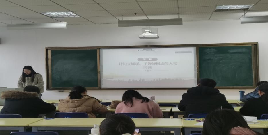 会议第二项,召开支部大会。在支部副书记吴欢的带领下讨论支娜瑛、王婵婵同志的入党问题。本次支部大会应到具有表决权的正式党员31名,实到具有表决权的正式党员26名。关于是否同意支娜瑛、王婵婵同志发展为中共预备党员的表决结果:支娜瑛同志26票赞成,0票反对,0票弃权;王婵婵同志26票赞成,0票反对,0票弃权。