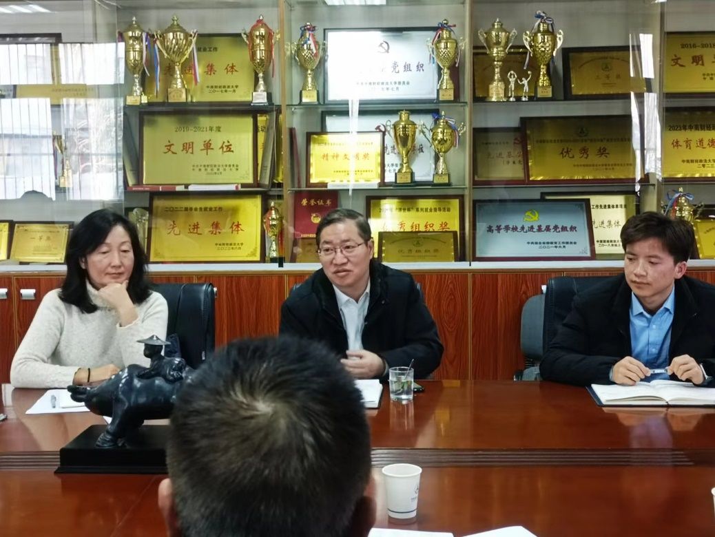 王延就学院具体学生工作向学工部作了汇报。在学院党委领导下,我院持续推进辅导员队伍专业化、职业化,凝聚“班导师”“兼职辅导员”等育人力量,搭建“五Li工程”系列品牌活动,用心、用情、用力抓好学生工作。王前哨对我院的学生工作与取得成绩给予高度的肯定。