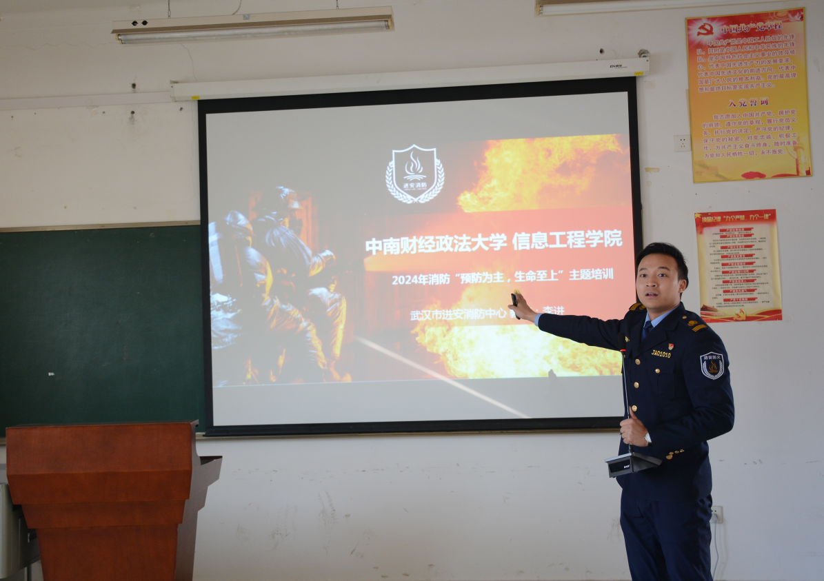 (通讯员 杨晨)为认真贯彻落实习近平总书记关于安全生产和消防安全的重要论述和指示精神,坚持“人民至上、生命至上”,统筹发展和安全,把“安全第一,预防为主”落到实处,严格执行学校《关于开展冬季火灾集中治理“百日会战”的通知》及上级有关指示精神,信息工程学院于2024年1月11日,在文永楼502会议室开展消防安全专题学习培训。本次培训由武汉市进安防火中心消防教官李进主讲,学院全体教职工参训。