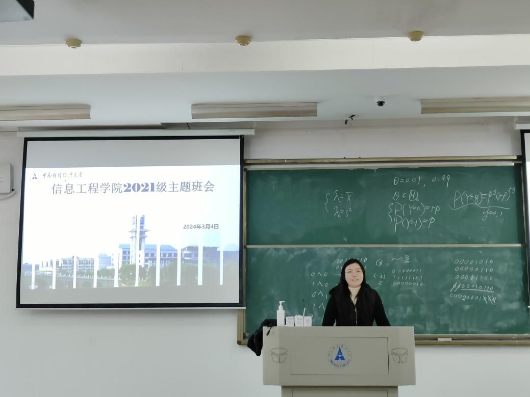 (学生通讯员 邱艳 陈锦鹏)为深入学习贯彻二十大精神,落实立德树人的根本任务,2024年3月4日上午,信息工程学院2021级在南湖校区文波楼211举行“强国建设、青年何为”主题班会,本次会议由信息工程学院学办主任、2021级辅导员焦馨蕙老师主持,会议同时邀请了学院2018届信息管理与信息系统专业毕业生、《又是一年南风起》作词作曲张怡天做经验分享。