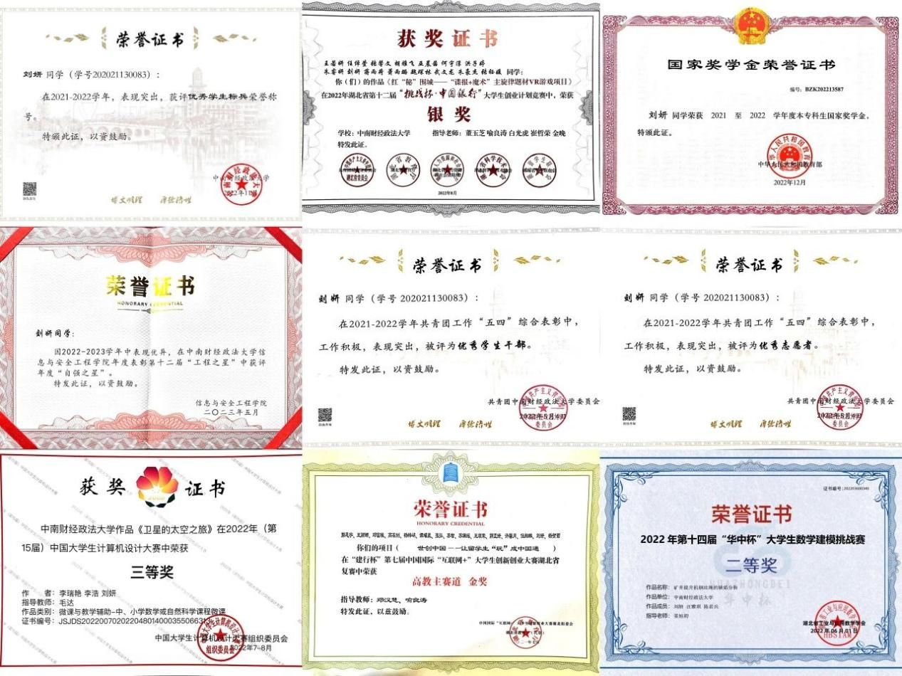 “我相信,科技创新的力量不分性别,女性同样可以在这个领域大放异彩。我将用自己的知识和热情,为国家的科技进步尽一份力。”怀揣着科创报国的炽热梦想,刘妍在学术科研领域砥砺前行。在学术上,她保持端正、谦虚的学习态度,成绩优异,专业排名第一,并连续两年获得国家奖学金。在科研方面,她积极参与各项学科竞赛和科研项目,将所学专业知识运用到实际中。加入张教授的数据挖掘与智能媒体实验室后,她积极参与科研项目和竞赛,与队友合作完成了作品《卫星的太空之旅》,获得2022年中国大学生计算机设计大赛国家级三等奖。此外,她还主持申报了国家级大创项目《基于Transformer自注意力机制的长短期科研兴趣论文推荐研究》,并独立撰写论文《TIDRec: A Novel Triple-graph Interactive Distillation Method for Paper Recommendation》,在SCI期刊外审。三年的时间里,她累计获得国家级奖项4项,省部级奖项10余项,校级奖项20余项。她深知,这些奖项不仅仅是对她个人的肯定,更是对新时代女大学生在科技创新领域所做努力的认可。她将继续保持谦逊和勤奋,为国家的科技事业贡献自己的力量。