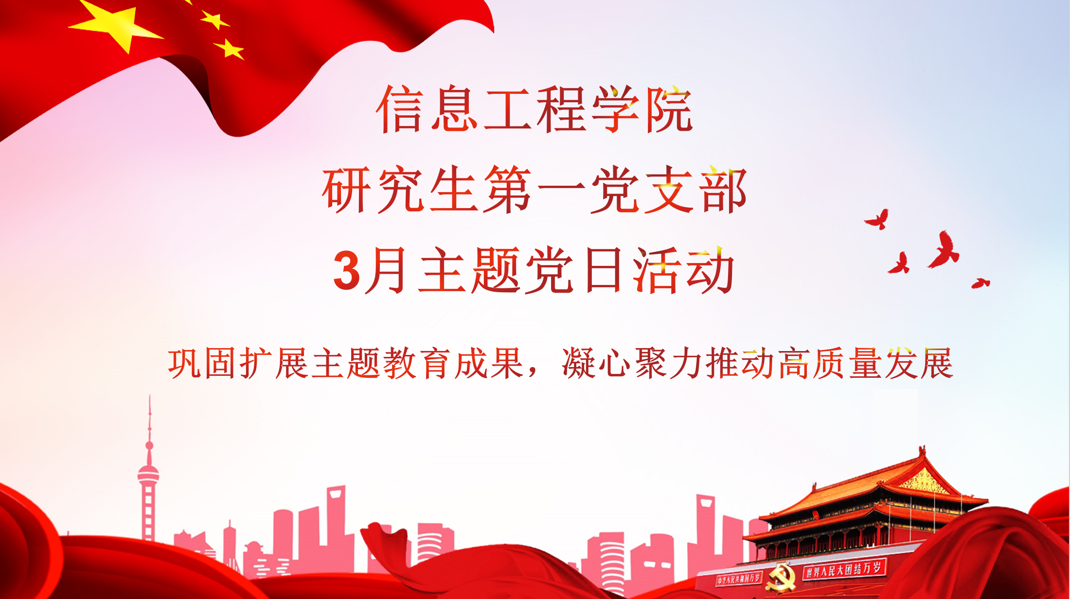 2024年3月28日下午14:30,信息工程学院研究生第一党支部在文添楼107教室召开了3月主题党日活动。本次党日活动以“巩固扩展主题教育成果,凝心聚力推动高质量发展”为主题展开学习。
