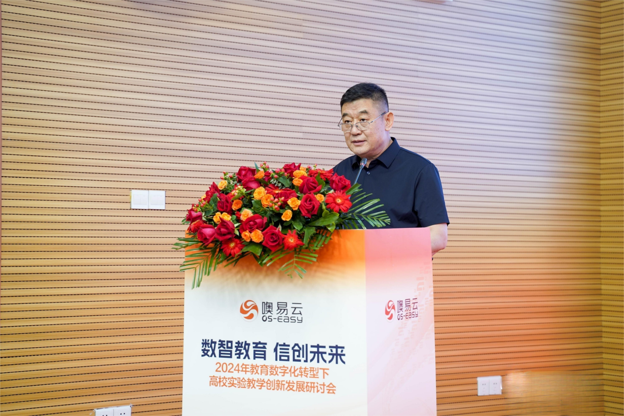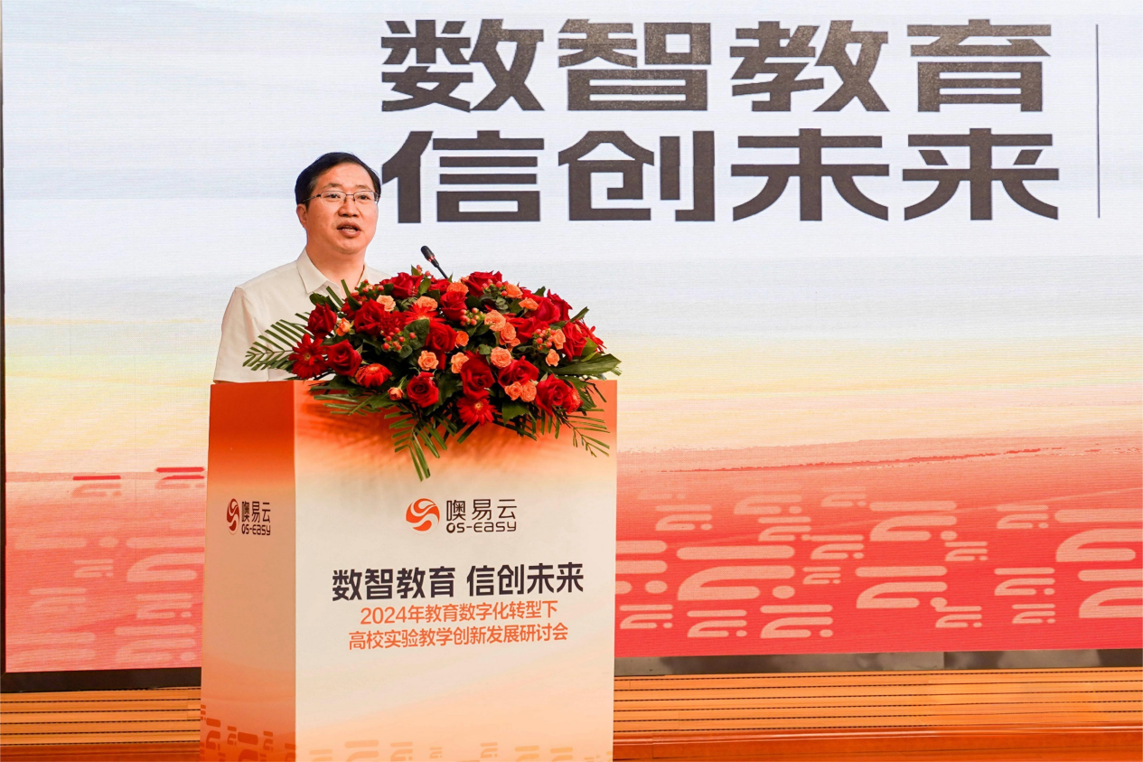 随后,中国高等教育学会教育信息化分会副秘书长臧玉春代表指导单位发表致辞,他表示:教育数字化转型是一项长期而艰巨的任务,需要政府、高校、企业和社会各界的共同参与和不懈努力。中国高等教育学会教育信息化分会秉承信息化企业兴,则高校信息化事业旺的理念,积极打造交流平台,服务信息化企业发展与壮大。实验教学是高校教学的重要环节,是高校人才培养的关键要素,对于培养学生的实践能力和创新精神具有重要意义,更需要以智慧化为目标,以信创化为依托,共同为高校实验教学创新发展贡献研究的新思路,实践的新方法。