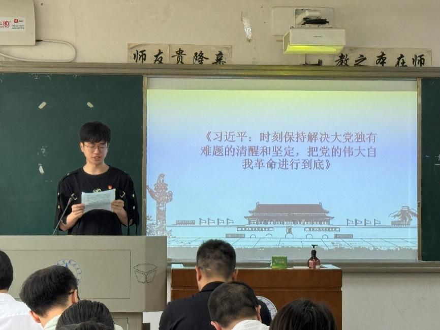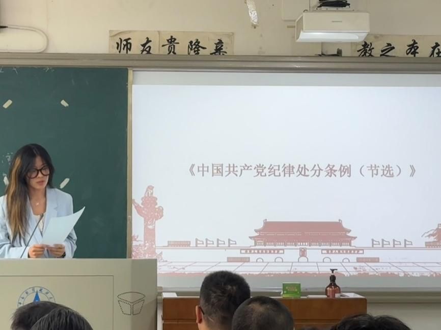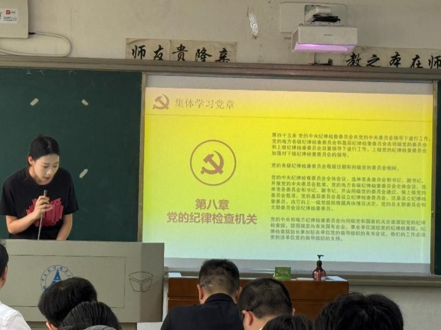 首先,彭行同志带领全体党员重温入党誓词。随后,王一帆同志带领学习了《中国共产党章程》第八章第四十五条,深入了解党的纪律检查机关的有关内容。