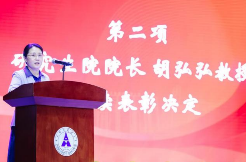 研究生院院长胡弘弘教授宣读《关于表彰第十四届研究生学术节先进集体和先进个人的决定》及《关于表彰2022-2023学年“研究生国家奖学金”获奖学生的决定》。