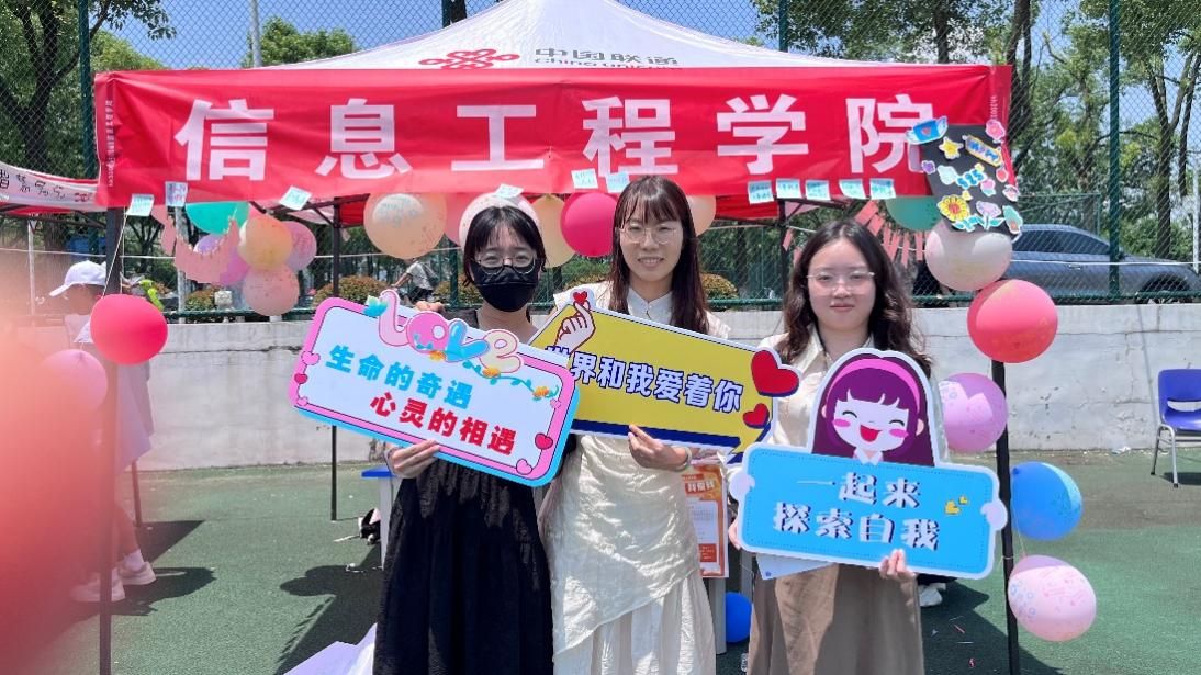 信息工程学院研究生会与党支部以“悦纳自我,从心启航”为主题参与学校“5·25”研究生心理游园活动,引导师生走出宿舍,走出网络,走向操场。