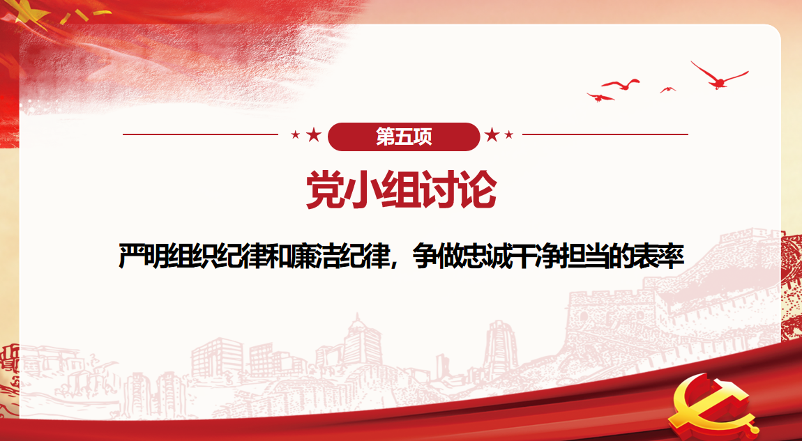 会议第五项:交流讨论,紧扣党的组织纪律和廉洁纪律开展研讨交流,进行提问互动。