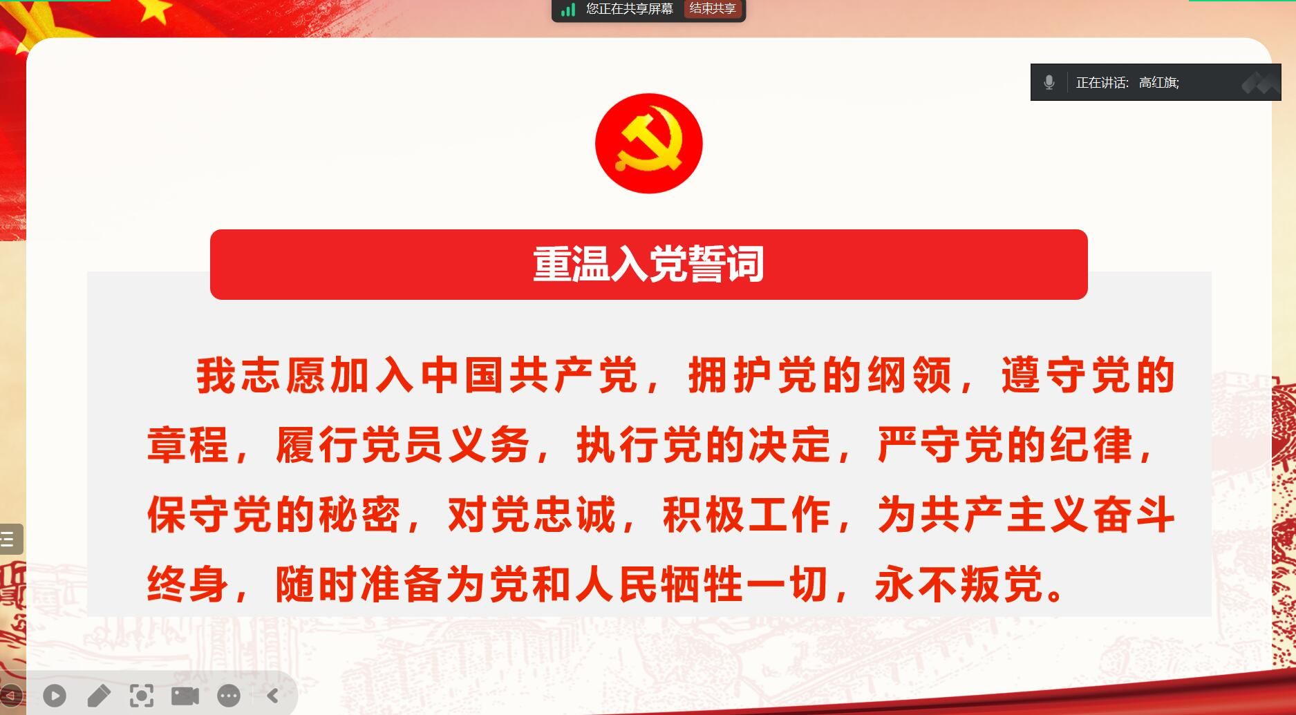 会议第一项,重温入党誓词。党支部全体成员重温入党誓词,回首入党初心,牢记时代使命,永葆党员本色。