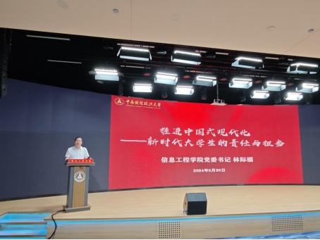 (通讯员崔雨凡)为深入贯彻落实党的二十大精神,以习近平新时代中国特色社会主义思想为指导,全面落实党的教育方针政策,聚焦立德树人根本任务,构建大思政育人体系,5月30日下午,在文济楼201大礼堂信息工程学院第十三届年度表彰“工程之星”颁奖典礼的现场,信息工程学院党委书记林际福与一百多名工程学子“同上一门思政课”,课程主题为《推进中国式现代化——新时代大学生的责任与担当》。