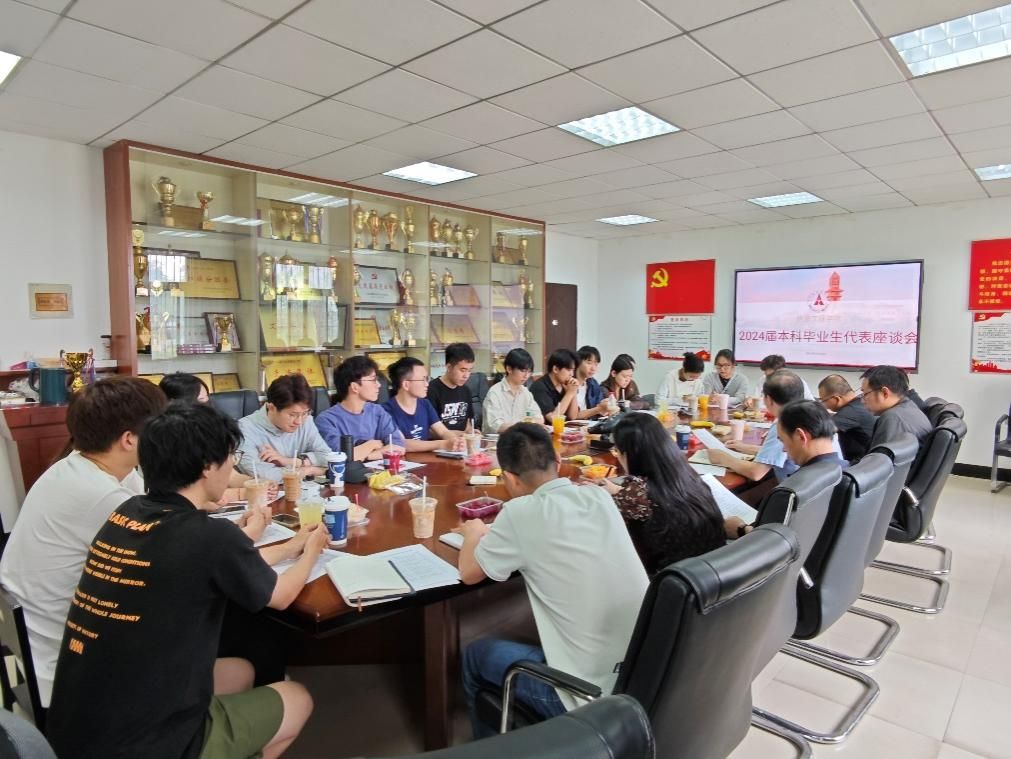 座谈会上,学院党委书记林际福,副院长熊平、杨俊、李毅鹏,各系主任以及辅导员代表、毕业生代表齐聚一堂,共同探讨和分享。会议在学院2024届毕业生辅导员彭行的主持下有序展开。