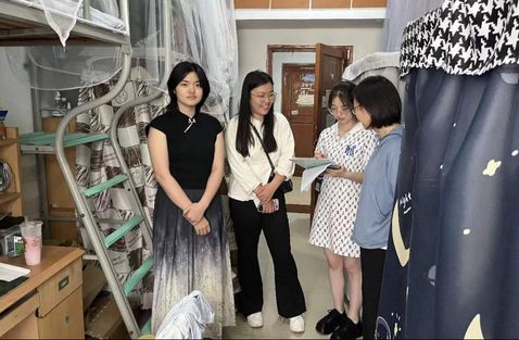 我院学办主任焦馨蕙老师、辅导员彭行老师、王安琪老师、崔雨凡老师和刘杰鑫老师走访学生寝室,着重进行学生实际住房情况了解、用电安全排查、消防安全排查和寝室卫生检查,同时也向同学们普及了相关的安全教育。