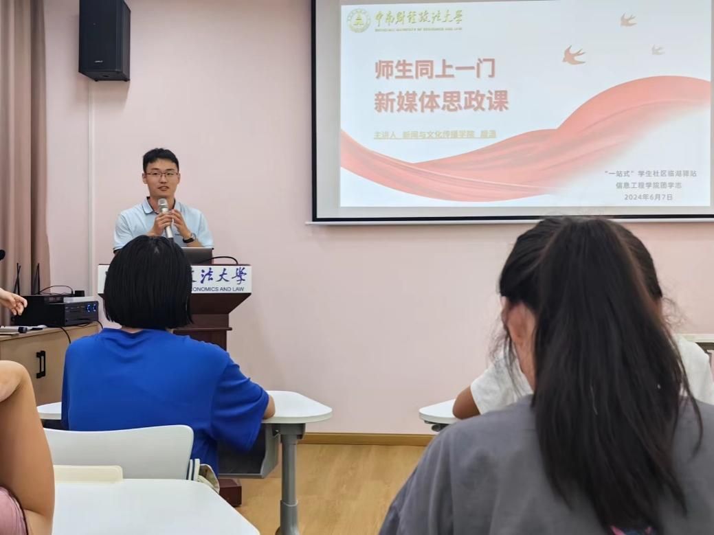 (学生通讯员 尉天菊 李伟健)为进一步规范学院新媒体运营,提升学院辅导员队伍和团学志成员新媒体工作水平,提高学院的宣传质量与成效。6月7日下午,“数智晓南”辅导员工作室在首义校区“一站式”学生社区思园成长发展空间举办了“师生同上一堂新媒体思政课”活动。此次活动邀请了校党委学生工作部思政办周潇担任授课讲师。信息工程学院学办主任焦馨蕙、辅导员王安琪、刘杰鑫、崔雨凡、第十六届团学志成员及各班班委参加此次活动。活动由刘杰鑫主持。