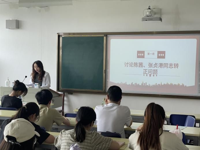 2024年6月11日下午14:30,根据党支部发展党员工作计划,经党委预审同意,信息工程学院研究生第二党支部在文澴517教室召开支部大会,讨论预备党员陈茜、张贞港同志按期转正问题。