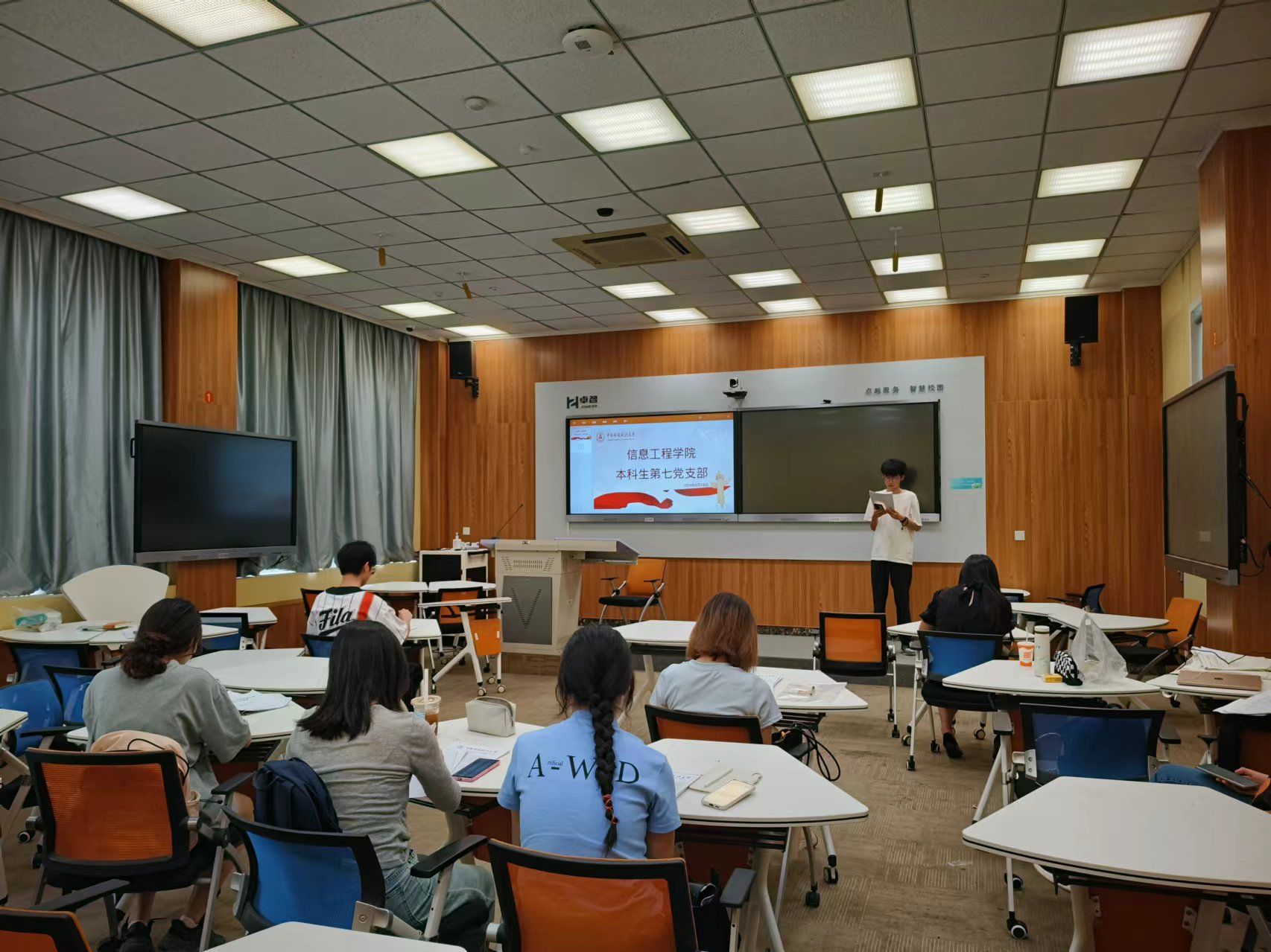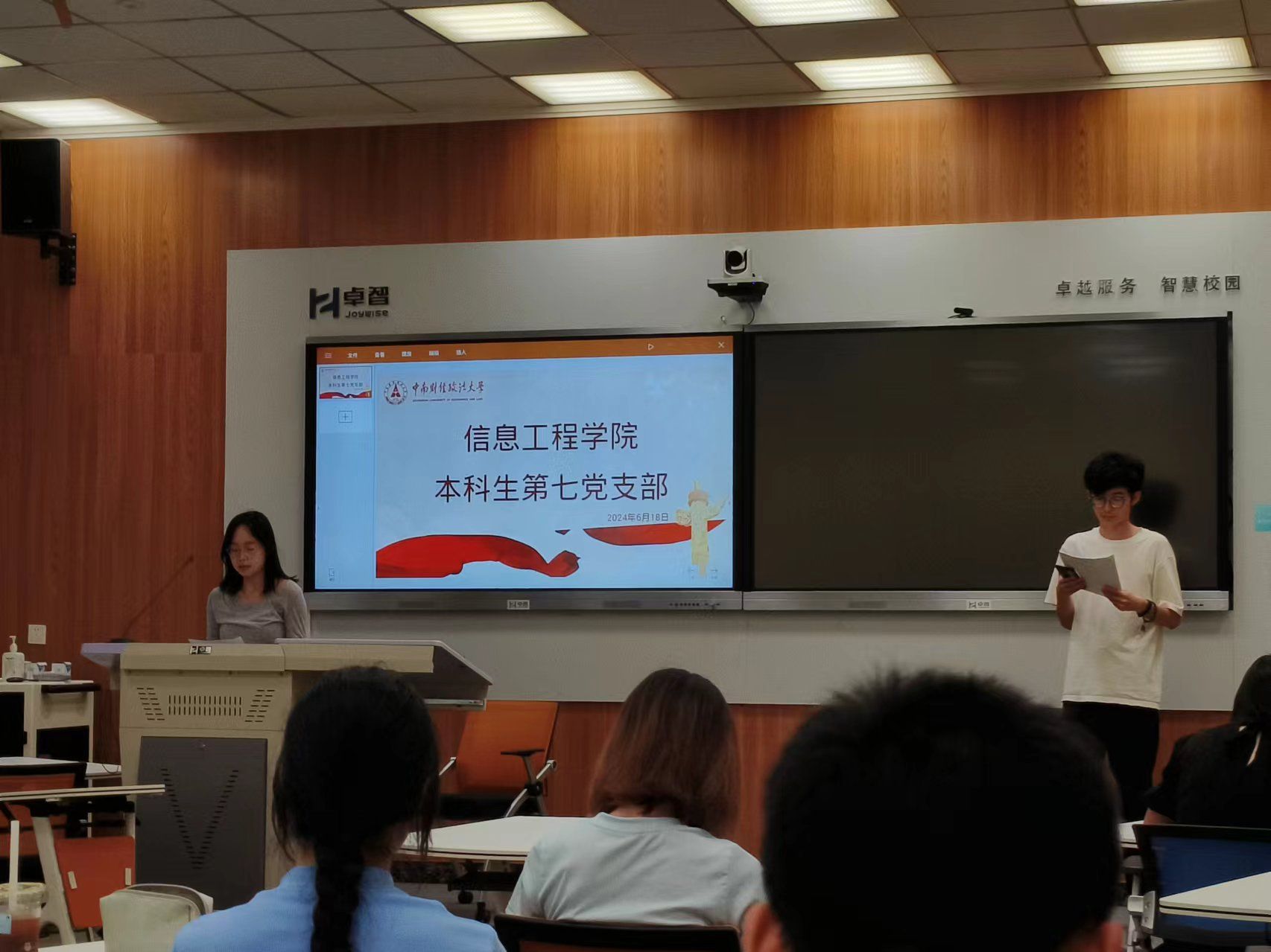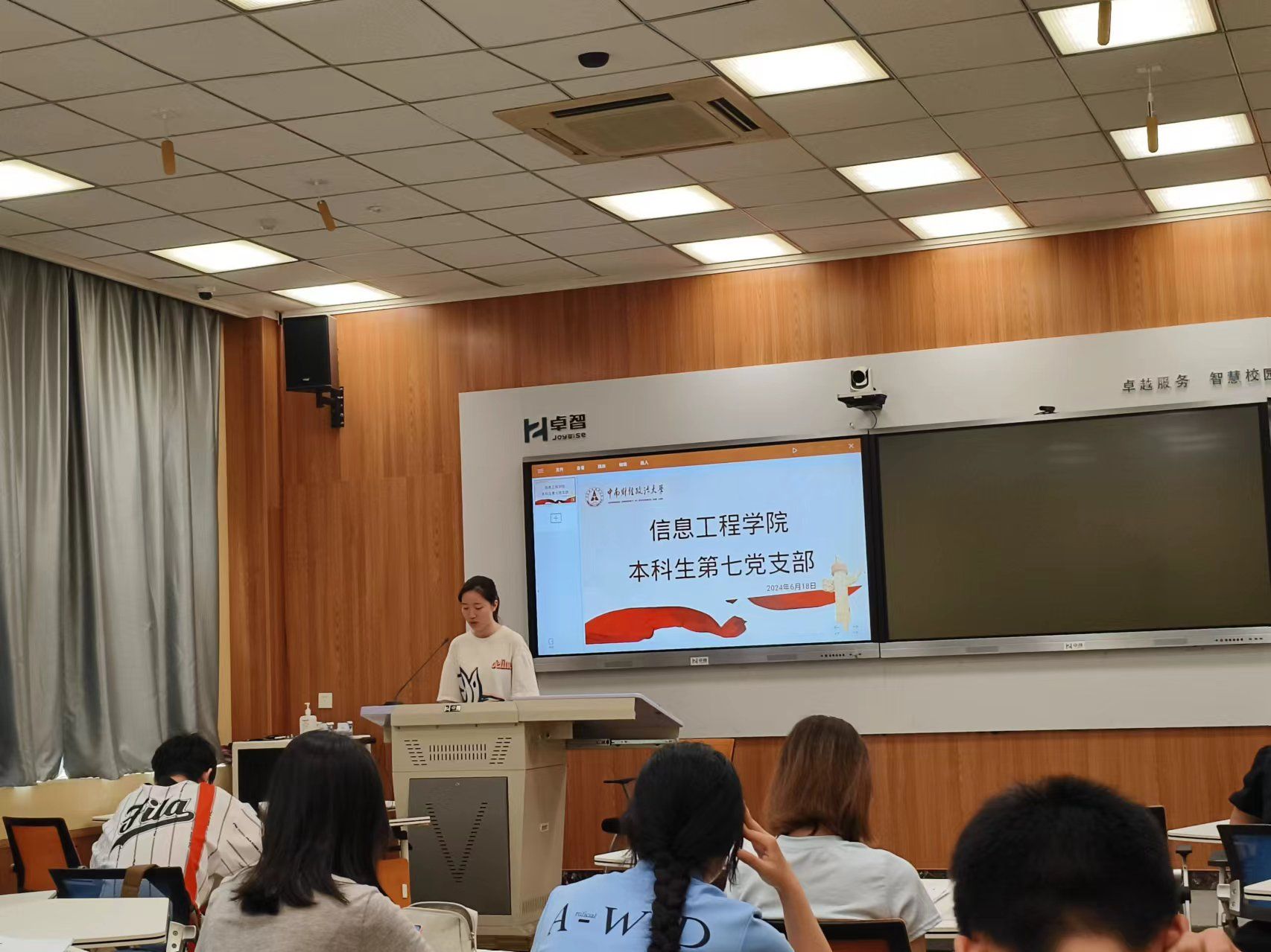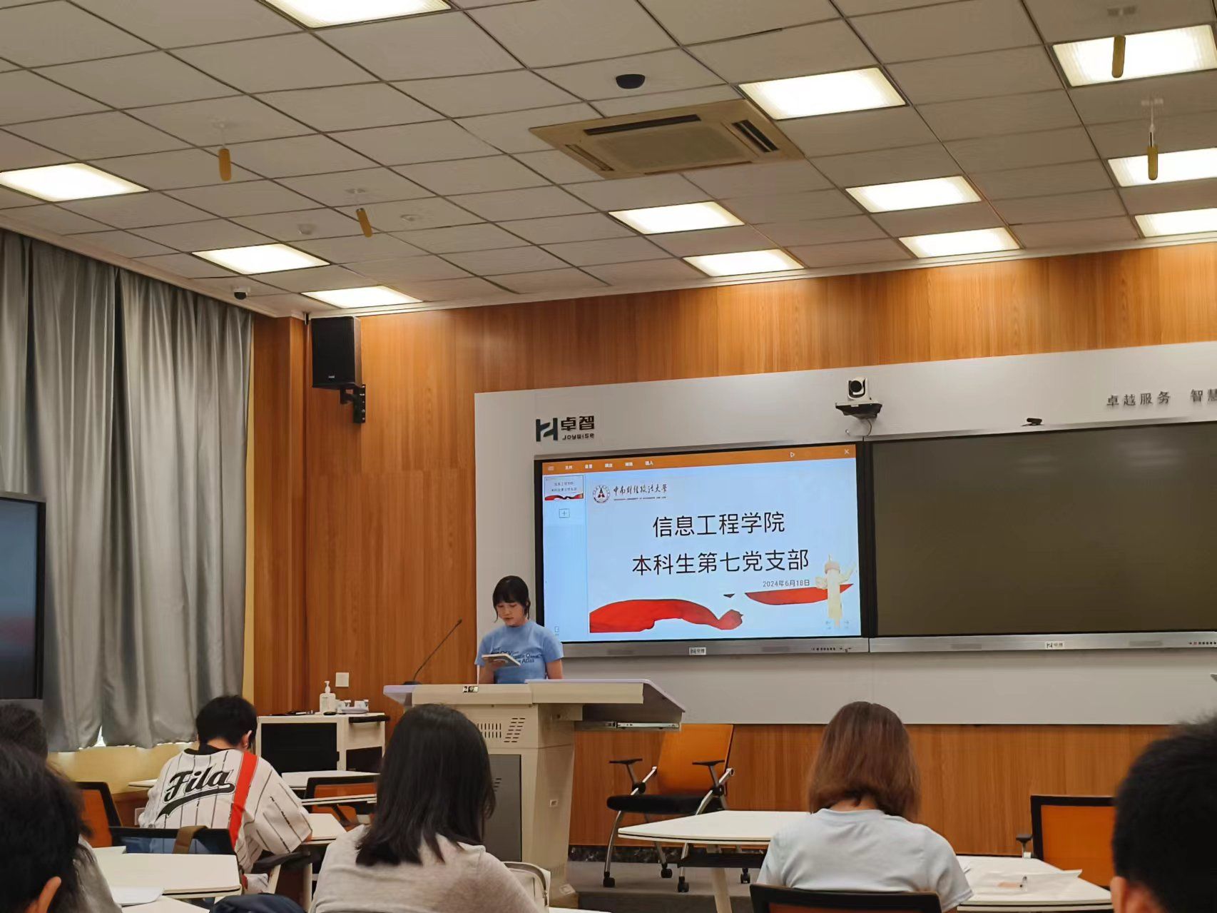 6月18日下午,工程学院本科生第七党支部于文波楼106教室召开支部大会大会,讨论2021级第一批预备党员转正问题,工程学院本科生第七党支部书记焦馨蕙参加了本次活动。