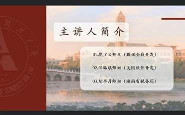 第二位分享嘉宾是汪璐琪,就业去向为美团软件开发。汪璐琪从前期准备,求职流程以及面试三个方面进行了经验分享。汪璐琪介绍了如何根据自己的目标进行对应的简历制作、求职的时间线、信息的来源以及笔试需要注意的一些问题,并针对其中的具体问题给出了详细的准备建议。