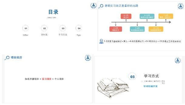 第一位分享嘉宾是鄢少文,他成功就职于腾讯全栈开发。鄢少文分享了自己顺利拿到Offer的过程,并详细介绍了秋招和春招的时间安排。此外他特别强调了实习经历在职业发展中的重要性,同时详细讲解了后端开发的学习方法和必备知识,包括计算机基础和算法的学习内容。他建议大家按照适当的顺序积累项目经验,并祝愿大家都能在求职过程中取得成功。