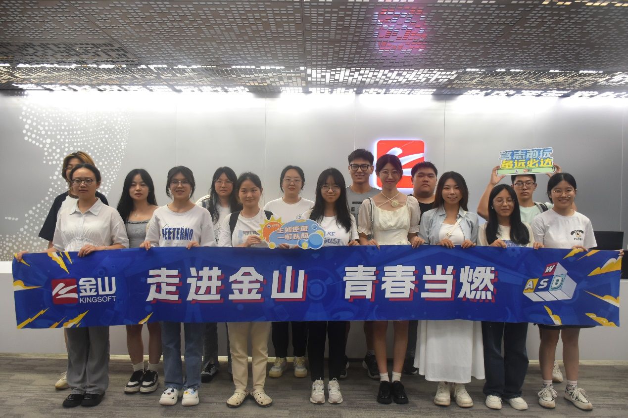 7月15日下午,同学们来到金山集团武汉总部进行参观交流。在工作人员的讲解下,了解了金山集团的发展历程和现状,之后在展厅自由参观并进行合影。
