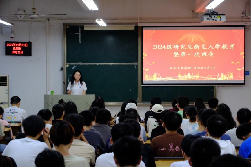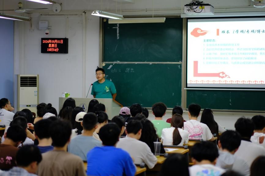新学期伊始,为扎实做好新学期学生教育管理服务工作,引导学生更好融入新学期的学习和生活,9月1日晚七点,2024级全体研究生入学教育暨新生班会在文添楼203教室举行。