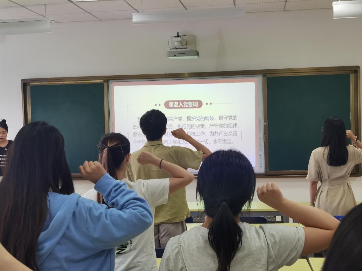 会议第一项,重温入党誓词。党支部全体成员在付雪晴同志的带领下重温入党誓词,大家昂首挺胸,气宇轩昂,每一位党员都用铿锵有力的声音和坚定不移的信心表达着自己的心声。