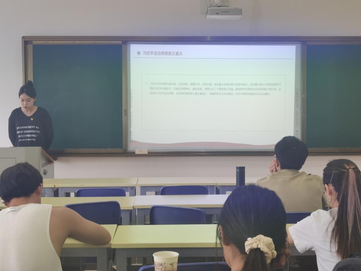 为深入学习贯彻习近平新时代中国特色社会主义思想,切实做好国家安全观宣传教育,不断增强支部党员的国家安全观意识。2024年9月19日下午,信息工程学院研究生第二党支部开展了习近平法治思想专题教育党课。此次活动以“坚守法治底线,筑牢国家安全屏障——习近平法治思想下的国家安全法制建设”为主题,通过主题讲座形式,使得支部成员更加深入学习习近平法治思想相关内容、深入认识国家安全法制建设,进一步提高网络安全意识。