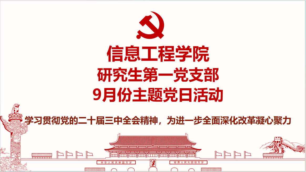2024年9月24日下午2:30,信息工程学院研究生第一党支部在文澴516教室开展支委换届选举和9月主题党日活动。本次党日活动以“学习贯彻党的二十届三中全会精神,为进一步全面深化改革凝心聚力”为主题展开学习。