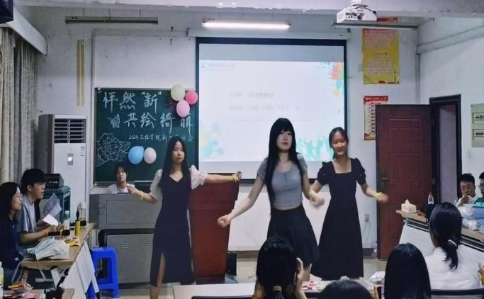 在主持人娄学燕和尹佳明精彩的开场词中,新生茶话会正式拉开帷幕。首先登场的是由王泽迪、李程艳、万星玉带来的充满活力的舞蹈表演《你要跳舞吗》。舞者们用激情的舞姿点燃了现场的气氛,一舞结束,全场响起热烈的掌声。