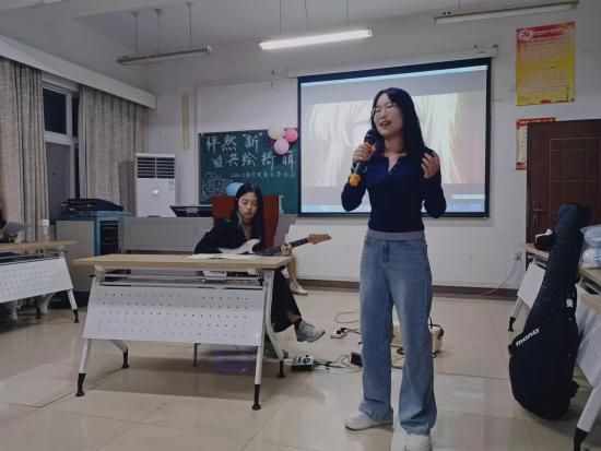 接着,由张屿竞、张贺磊、华文闻、邓茹月、唐雨星、李程艳、郭佩瑶共同演绎的情景剧《滴血验亲(学术版)》,创意十足,引得现场阵阵笑声与掌声。王今和吉他手向卓君合作的吉他演唱《love story》,让大家沉浸在浪漫的氛围中。雷诗敏的独唱《小小虫》,让大家感受到淡淡的哀愁。万星玉和陈如意合唱的《江南》,旋律优美。