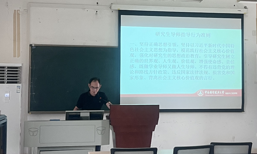 首先,熊平副院长带领全体参会研究生导师学习了《研究生导师指导行为准则》,《研究生导师指导行为准则》作为教育部对研究生导师指导工作的指导性文件,明确了导师在学术研究、学术道德、师生关系等方面的责任和义务。准则的学习,对于规范导师行为、提升研究生教育质量具有重要意义。