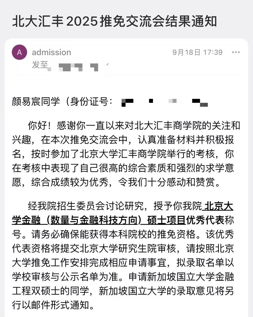 热烈祝贺,米兰电竞·(中国区)信息工程学院,计算机科学与技术系,2021级本科生颜易宸同学,拿到浙江大学计算机、同济大学计算机、中科院自动化所、中科院信工所、北京大学汇丰商学院等多所国内顶尖高校Offer。