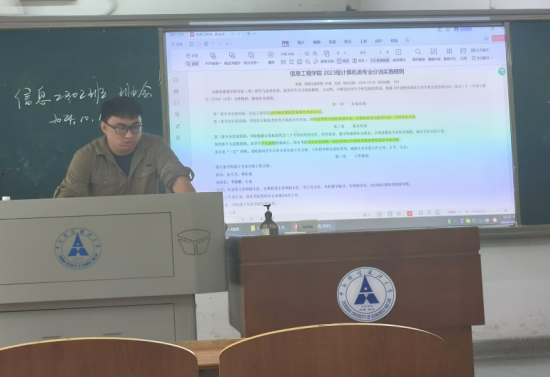 为帮助同学们了解信息工程学院2023级计算机类专业分流相关政策,信息2302班于10月17日上午在文澜楼204教室举行了专业分流宣讲会。本次活动由信息2302班班级导师蔡耀明老师主持,全体同学共同参与。