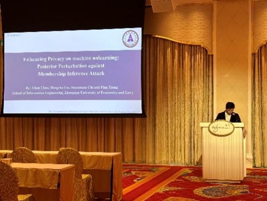 本次会议重点关注并行和分布式计算的两大领域,即架构、算法和网络,以及系统和应用。由我院研究生陈宸、刘恒竹、迟欢欢以及熊平教授合作的论文《Enhancing Privacy in Machine Unlearning: Posterior Perturbation against Membership Inference Attack》入选会议并进行现场汇报。该论文提出了一种基于后验扰动的方法,通过随机化模型输出来防御成员推理攻击且无需调整模型参数。在置信度攻击场景中,论文提出了对抗性噪声扰动算法以混淆遗忘模型输出的置信分数,进而掩盖原始模型和遗忘模型间的输出差异。此外,论文提出了标签扰动算法,基于高维球体采样方案随机化模型的预测标签来防御唯标签攻击。在多种真实数据集和模型上的模拟实验结果证明了论文所提方法的有效性与优势所在。