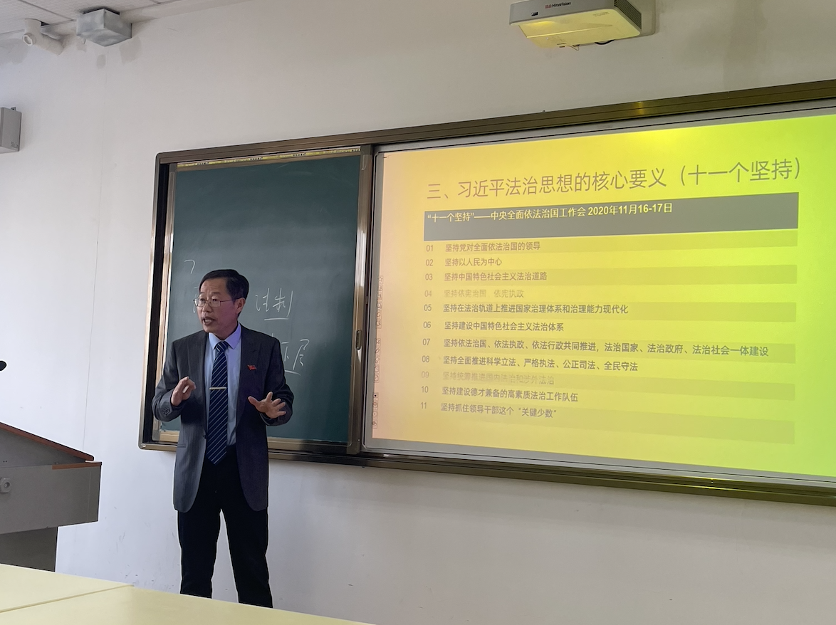 值得注意的是,李教授指出,习近平法治思想的核心要义是十一个坚持,尤其是前三个坚持是全面依法治国的政治方向,青年学生一定要牢记。