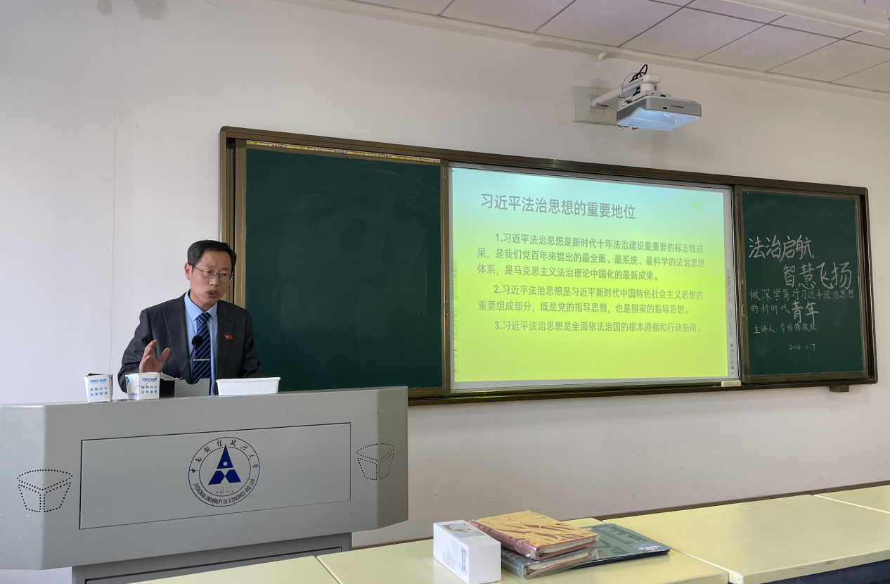 讲座正式开始后,李教授首先介绍了习近平法治思想的形成和地位。他指出,习近平法治思想是习近平新时代中国特色社会主义思想的重要组成部分,是全面依法治国的根本遵循和行动指南。李教授引用葡萄牙、苏联等国际案例,结合我国自身历史,全面论述了习近平法治思想的重要地位。
