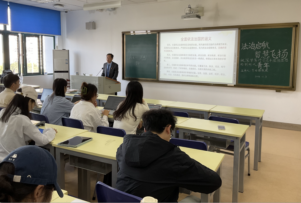 随后,李教授深入阐述了习近平法治思想与全面依法治国战略布局的关系。他通过生动的案例分析,展示了习近平法治思想在指导国家治理体系和治理能力现代化中的重要作用,李教授对全面依法治国的涵义进行了层层深入的剖析,包括目标全面,主题全面,环节全面和领域全面。