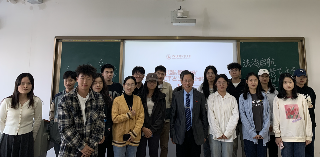 在讲座结束后,李教授和同学们一起合影留念,鼓励大家做深学笃行习近平法治思想的新时代青年。
