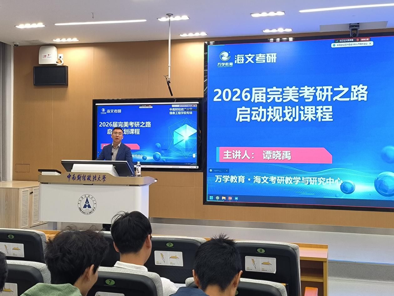 (通讯员 汪雪妍 陈孝丁敬)为帮助2022级学生把握考研最新形势,增进学生对学校、专业等内容的了解,科学制定考研选择与规划,11月8日下午14:10,“辅梦前行 逐梦启航”——2022级助力就业升学专项计划·考研专题辅导讲座在文波楼智慧教室112顺利举行。本次活动由本科2022级主办。活动特邀万学教育海文考研谭晓禹和新文道研芝士伊逸担任主讲嘉宾,讲座由2022级辅导员陈孝丁敬主持。
