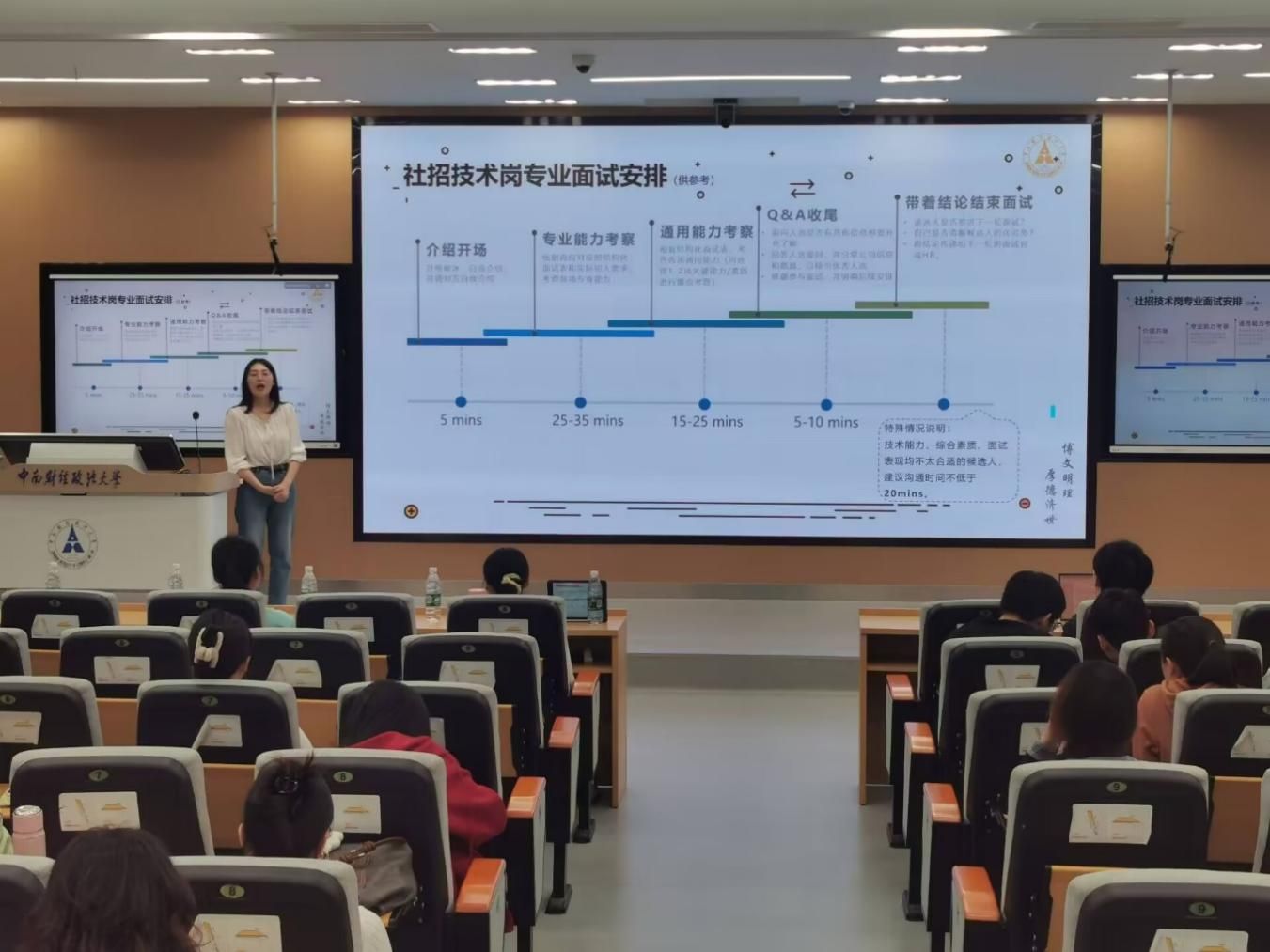 陈孝丁敬老师系统地介绍了面试应遵循的基本原则、面试前应做的准备工作以及面试的基本类型和流程。结合实际求职场景,向同学们传授了实用的面试策略和简历制作技巧,并通过对十余份简历的深入分析,指出了求职者在简历撰写过程中常见的误区,并提供了针对性的解决方案。她强调,一份优秀的简历是成功获得面试机会的关键,而出色的面试表现则是最终赢得心仪职位的决定性因素。整个讲解过程条理清晰、深入浅出,极大地激发了在场同学对未来求职的热情与信心。
