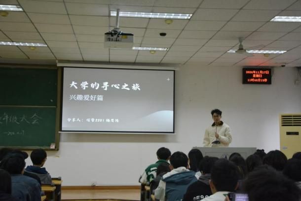 (学生通讯员 鄢琪 李潇一 通讯员 彭行)为扎实做好“三全育人”工作,帮助新生更好地适应大学生活,明确个人发展目标,规划成长蓝图,11月17日上午,信息工程学院在文润306教室举行2024级本科生主题年级大会。学院2024级辅导员彭行,各新生班级学生助理,特邀嘉宾、学院2024届优秀毕业生邓钰燕及2024级全体学生参会。