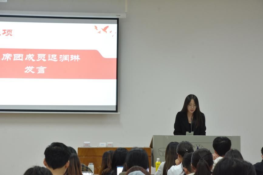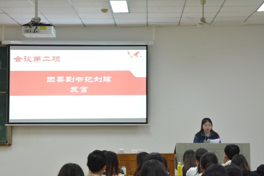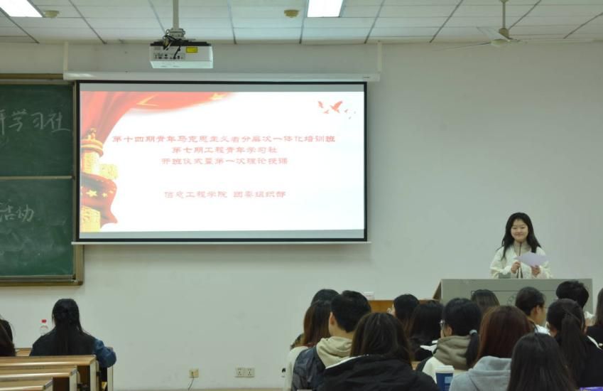 主席团成员迟润琳宣布信息工程学院第七期青年学习社开班,介绍了青年学习社的学习流程和纪律要求,期待每一位青年学子能够在学习社中接受锻炼,增长才干,提升自我。