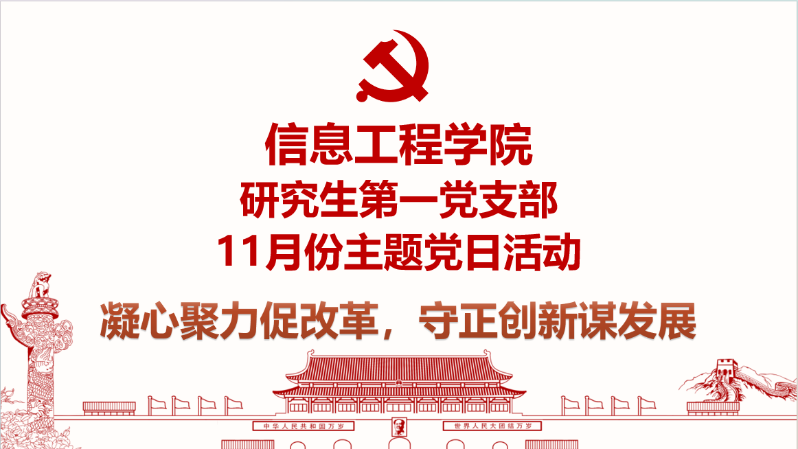 2024年11月26日下午4:30,信息工程学院研究生第一党支部在文澴517教室开展11月主题党日活动。本次党日活动以“凝心聚力促改革,守正创新谋发展”为主题展开学习。