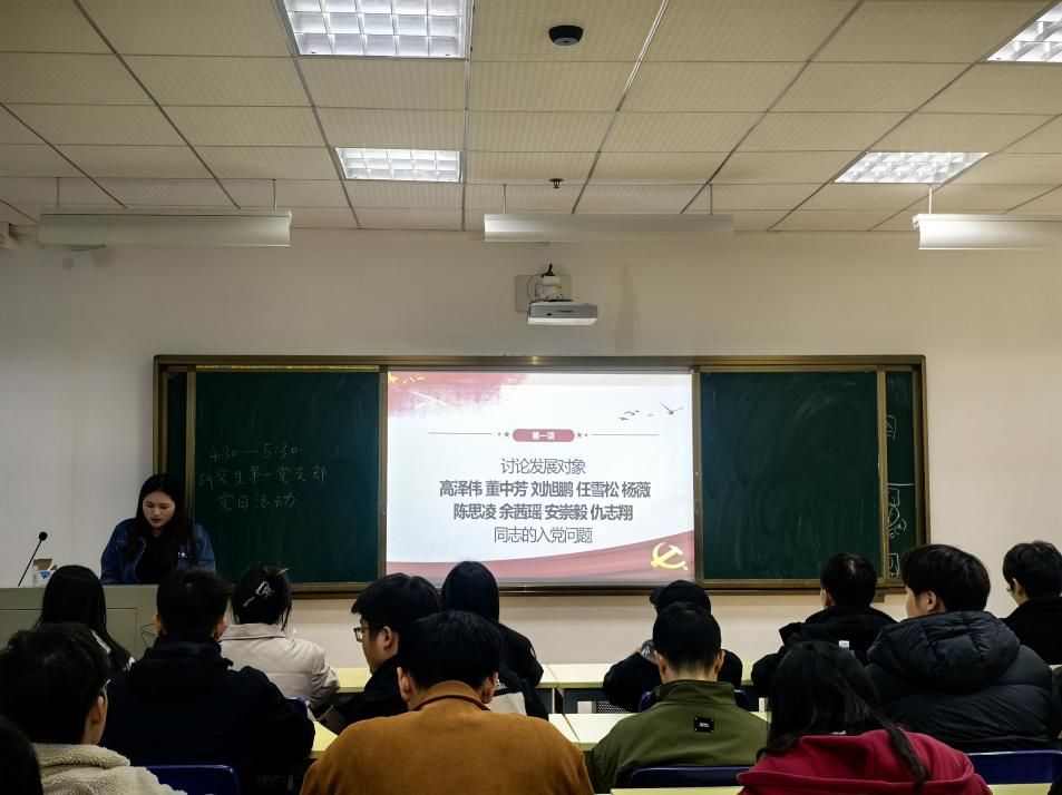 会议第一项议程,召开支部大会,讨论是否接收高泽伟、董中芳、刘旭鹏、任雪松、杨薇、陈思凌、余茜瑶、安崇毅、仇志翔九位同志为预备党员的问题。