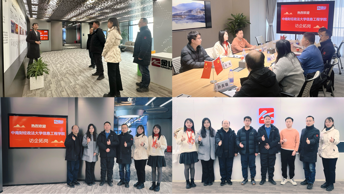 12月20日,石龙一行到金山集团武汉总部参观调研,集团人力资源部高级经理徐霞全程陪同。学院一行参观了金山A5展厅,徐霞讲解了金山集团发展历程、核心业务和校企合作概况,表示十分期待与我院共同探索校企合作培育数字化人才的新模式。张承德、孙夫雄和李闪闪三位老师分别就学院人才培养特色、专硕课程设置、学生实习实训等方面进行介绍,双方围绕实习基地建设、专硕课程改革等方面进行深入交流洽谈。
