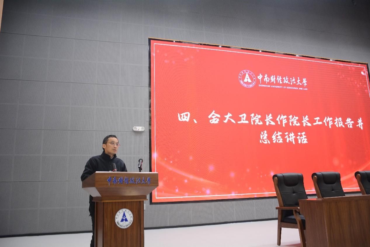 学院院长金大卫向全体教职工作了2024年度学院工作报告,从学科建设、科学研究、人才培养、教育教学、社会服务等九个方面总结了学院在2024年取得的成绩,并对学院2025年工作进行了部署。