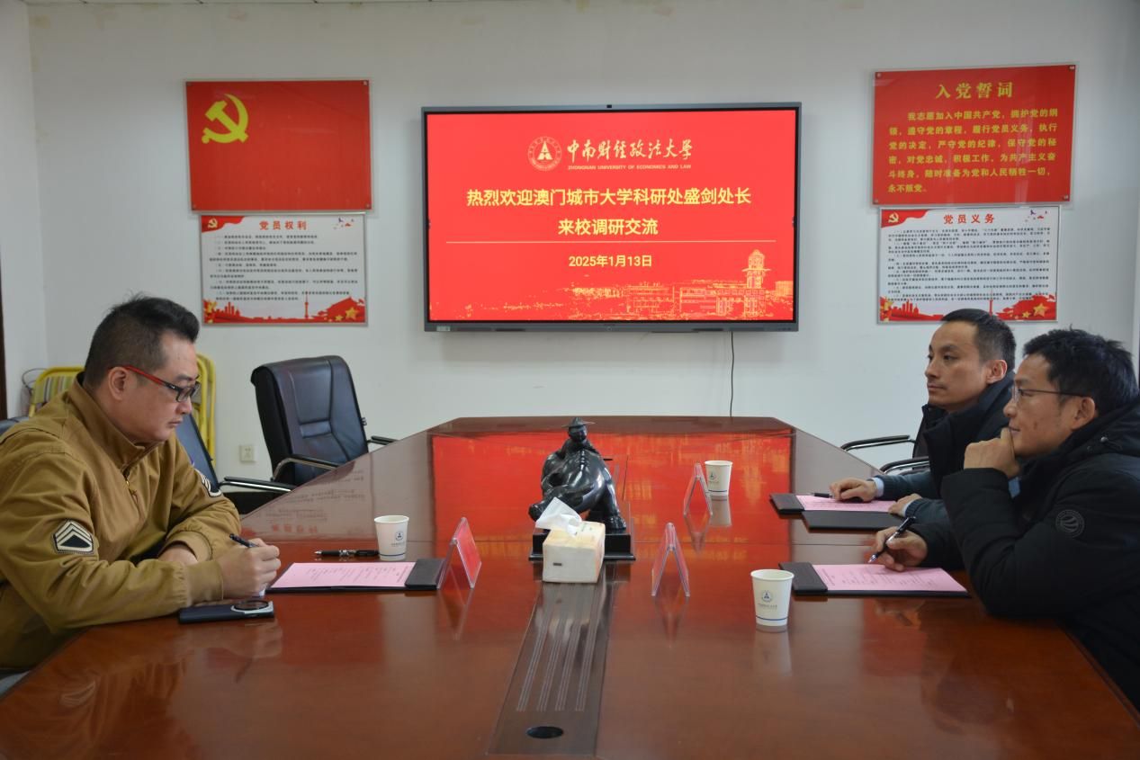 (通讯员 彭行)为推进澳门城市大学与我校的合作走深走实,澳门城市大学(后简称“澳门城大”)科研处处长盛剑受信息工程学院邀请于1月13日上午来汉与我校相关负责人召开科研合作专题会议进行协商交流。学校科研部部长兼社科院院长李小平出席座谈会,信息工程学院院长金大卫主持会议。